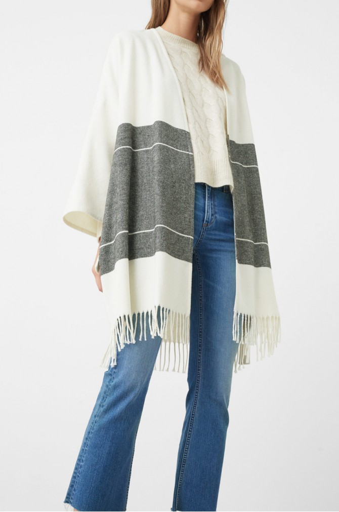 Abychom neopomněli na zimní dámské oblečení, tak se nyní pozastavme u velkých šál. Aktuálně ,,letí‘‘ šály všelijakých vzorů. Nejčastěji jsou vyráběny a nošeny kostkované. Tyto šály mají výhodu v tom, že nejen tvoří dokonalý módní doplněk, ale i poslouží ve velké zimě. Šál můžete v teplejších dnech nosit jen přehozený například přes kabátek. Když přijde zima, stačí šálu párkrát omotat kolem krku. Ten pak bude dokonale ochráněn proti nastydnutí. Navíc velkou šálu můžete využít jako pončo, které dodá vašemu outfitu eleganci a zároveň osobitý styl. Pončo můžete převázat tenkým páskem, který by bylo vhodné sladit s botami nebo kabelkou.