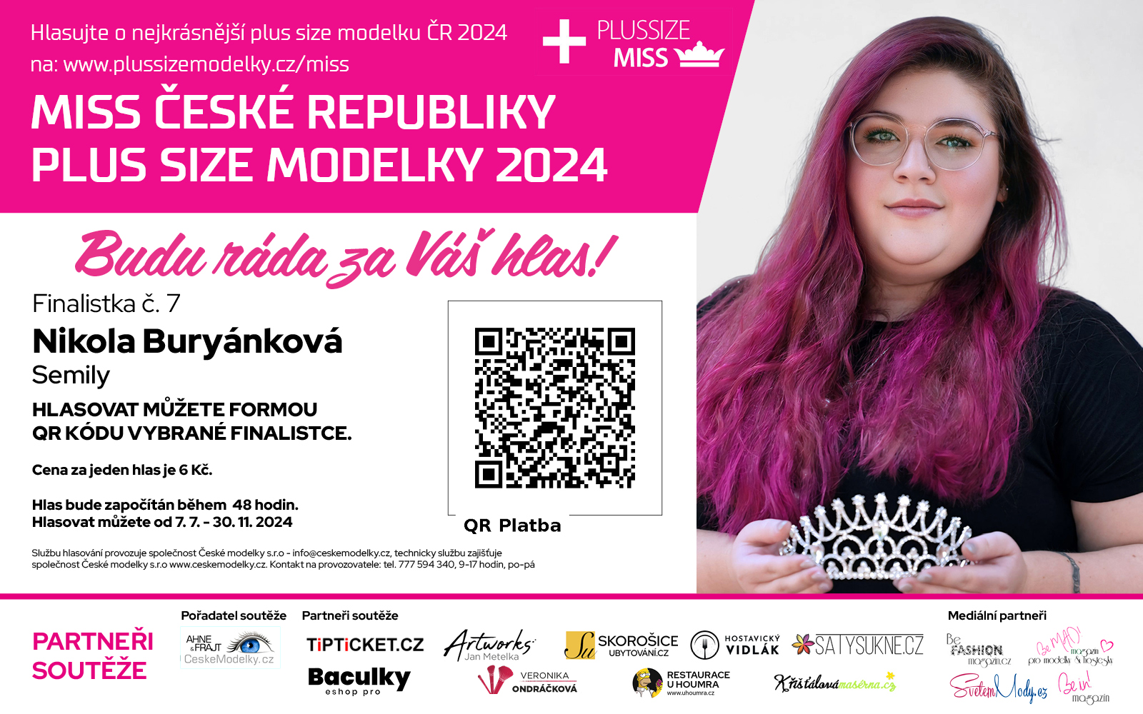 Video medailonek finalistky soutěže Miss Plus Size modelky ČR 2024 - Nikola Buryánková s číslem 7