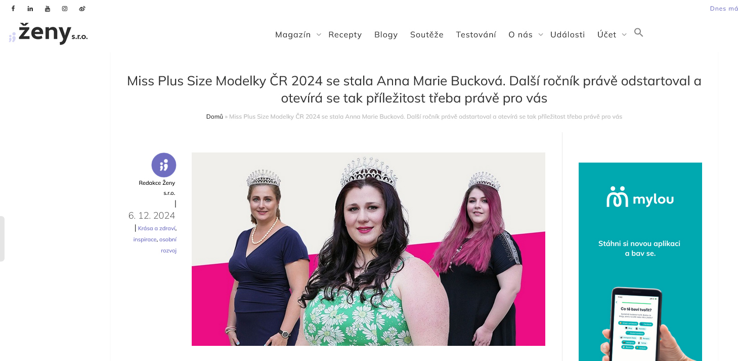 Napsali o nás: Miss Plus Size Modelky ČR 2024 se stala Anna Marie Bucková. Další ročník právě odstartoval a otevírá se tak příležitost třeba právě pro vás